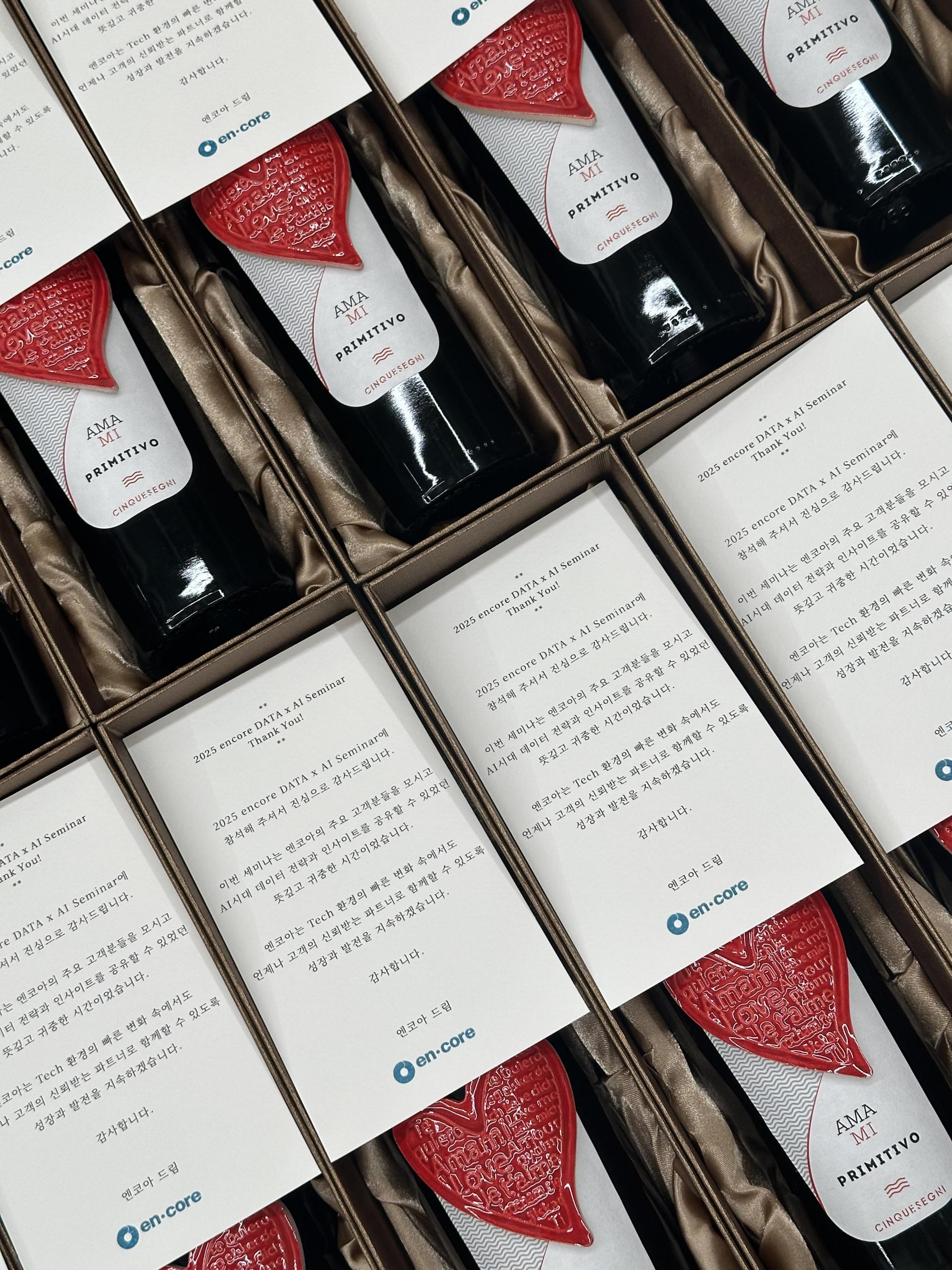 행사에 참석하신 내빈분들께 드릴 호불호 없는 레드 와인으로 리스트 추천 도와주시고 감사 엽서 제작 가능할까요? 🙋♂️