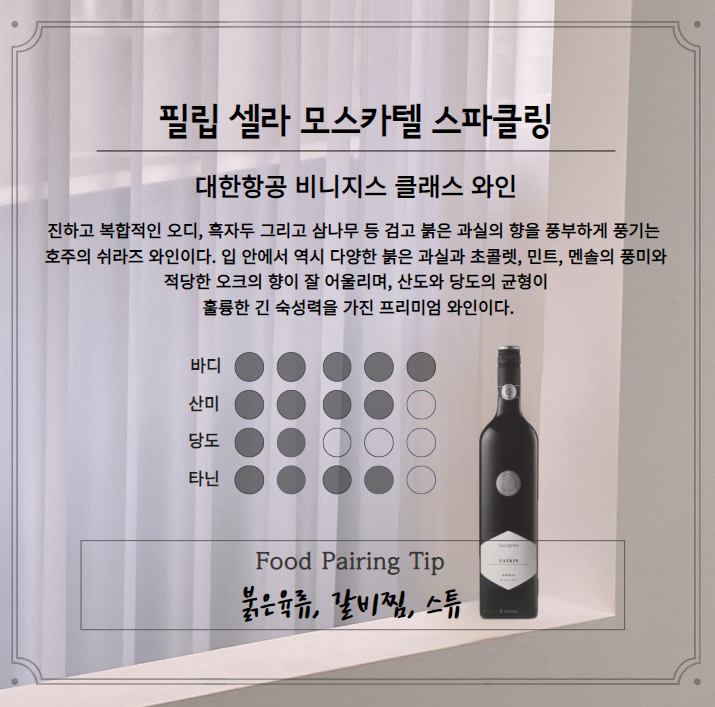 잘 어울리며, 산도와 당도의 균형이 훌륭한 긴 숙성력을 가진 프리미엄 와인 이에요 -