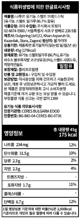 오가닉 스펠트밀 브레드 스틱 45g